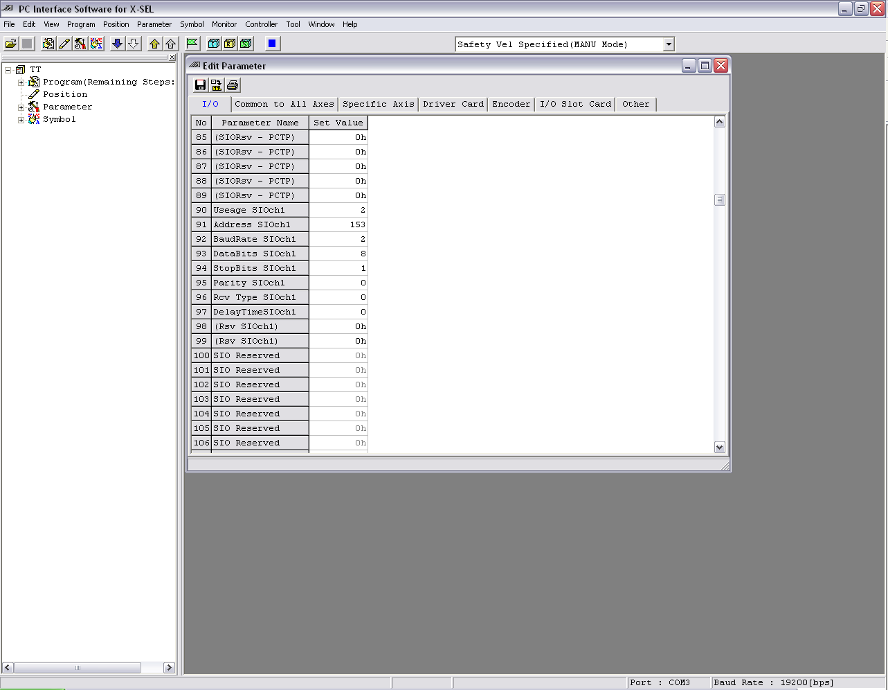 software for X-SEL controller”. The figure below shows a snapshot of the I/O parameter
