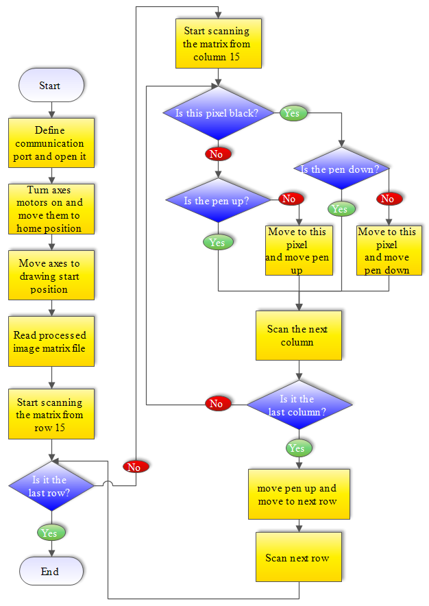 dynamically generated and sent to the robot. The pen is moved down on the paper