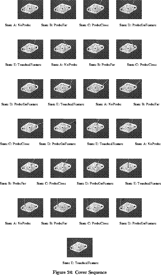 The inspection sequence corresponding to this experiment is shown in Figure 24. Shown there, the DRFSM transitions correctly through the inspection of the outside profile (depth of recursion=0), a hole (1), a profile pocket (1), a hole (2), and another hole (1).